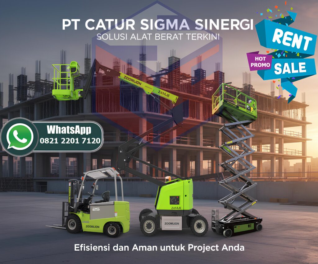 PT. CATUR SIGMA SINERGI melayani sewa/rental Scissor Lift, boomlift mingguan, bualanan dan tahunan Kami merupakan Distributor Lifting Sewa & Rental Boomlift /MANLIFT/SCISSOR LIFT/ TANGGA ELEKTRIK/AWP (Aerial Work Platform) /LIFT TABLE dan Sewa Boom Lift/Manlift dan Scissor lift/ Tangga Gunting Elektrik di Surabaya Gresik Jakarta Bekasi Tangerang, Cilegon, Semarang, Jogja Malang Banyuwangi Bali Lombok madura Pasuruan Jawa Timur Jawa Tengah jawa Barat Sulawesi dan di seluruh Indonesia. Sewa & Rental Boomlift/Manlift ketinggian : Genie Z45 : 16 Meter Genie Z60 & Z62 : 20 meter GENIE S85 : 27 Meter GENIE S105 & S125 : 34 Meter & 40 Meter